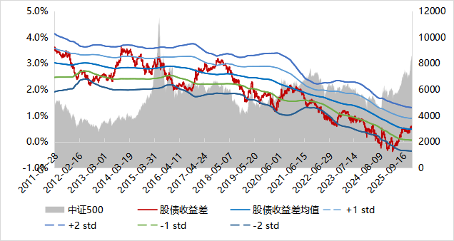▼中證500股債收益差