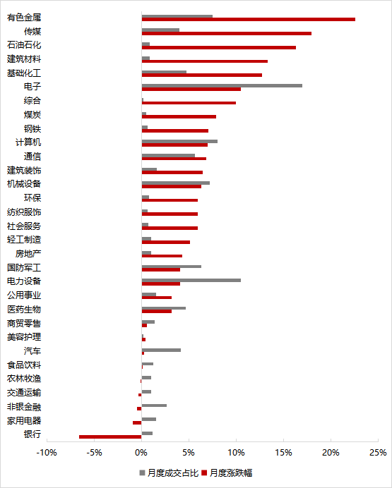 ▼行業(yè)漲跌幅及成交占比