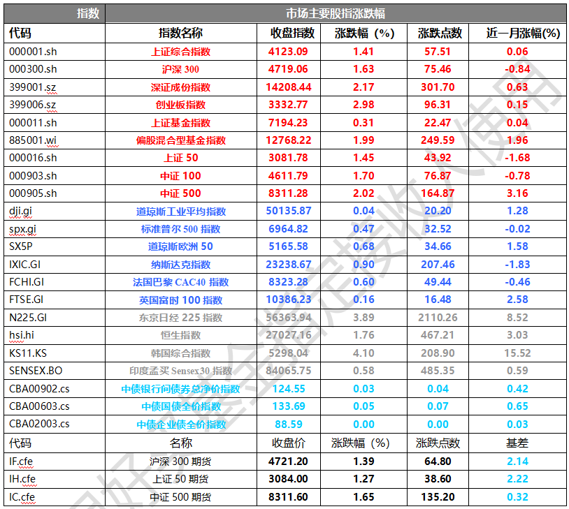 昨日全球主要股票市場(chǎng)普遍上漲,尤其是亞太市場(chǎng)漲幅較大,國(guó)內(nèi)債券則暖意延續(xù),維持溫和修復(fù)馬斯克的登月計(jì)劃為AI科技提供新的敘事,在最新披露的規(guī)劃中,月球?qū)⒊薪泳蘖康腁I算力需求和電力供給,有望開(kāi)啟新一輪的AI投資。另外,金銀市場(chǎng)的企穩(wěn)回升短期內(nèi)企穩(wěn)回升,或是對(duì)高市早苗上臺(tái),保守黨一黨獨(dú)大后全球政治局面變化的反饋,在地緣政治不斷緊張的當(dāng)下,黃金仍具備長(zhǎng)期投資價(jià)值