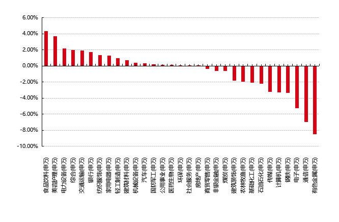 圖表:上周申萬一級(jí)行業(yè)漲跌幅