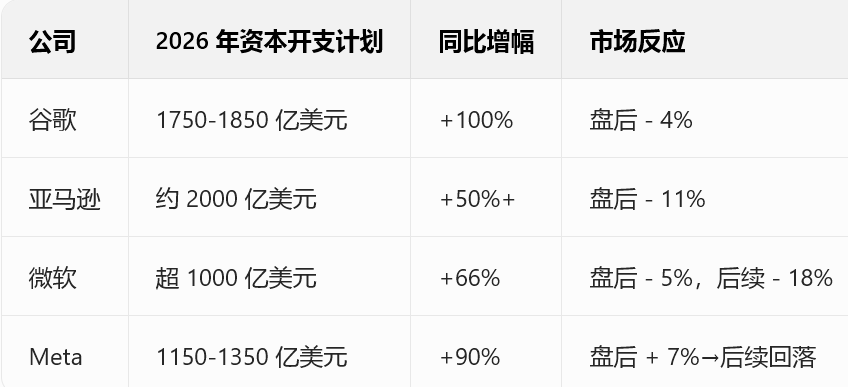 資本開(kāi)支 “爆炸式” 增長(zhǎng),利潤(rùn)被 “折舊黑洞” 吞噬。這是最核心導(dǎo)火索,五大科技巨頭 2026 年 AI 相關(guān)資本開(kāi)支預(yù)計(jì)超5000 億美元,是 2025 年的 1.8 倍。