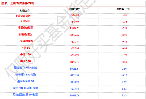 上周,歐美主要市場(chǎng)漲跌不一,其中,道指上漲2.50%,標(biāo)普500下跌0.10%;道瓊斯歐洲50 上漲0.92%。亞太主要市場(chǎng)漲跌不一,其中,恒生指數(shù)下跌3.02%,日經(jīng)225指數(shù)上漲1.75%。